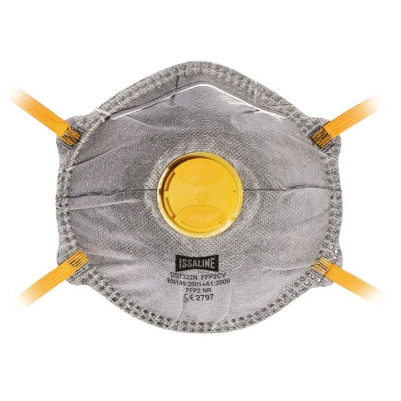 Esta mascarilla FFP2 con válvula y capa de carbón activo está diseñada para ofrecer una protección respiratoria eficaz en entornos industriales con presencia de polvos tóxicos y humos de base acuosa.