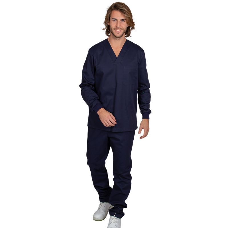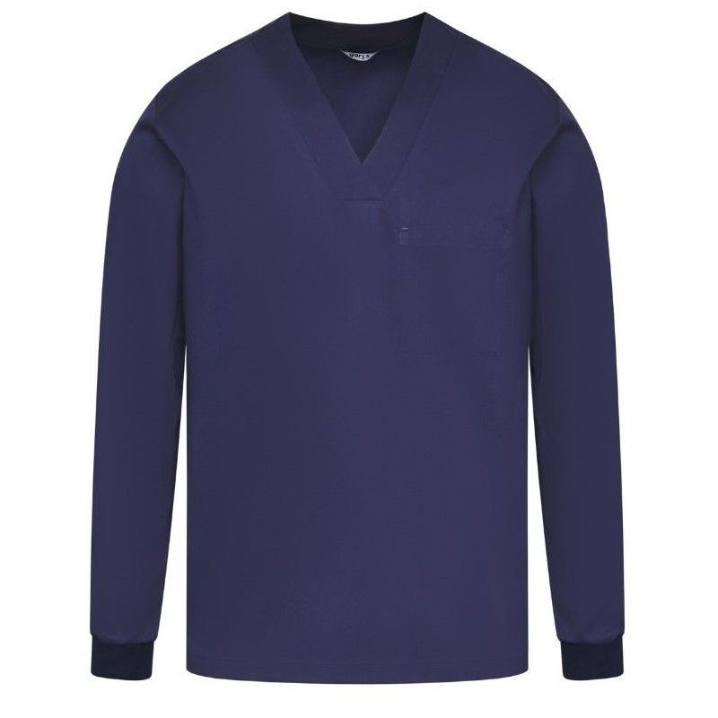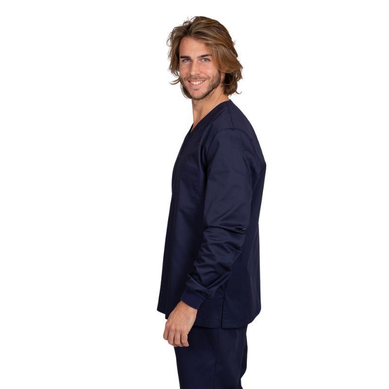 El bolsillo oculto en el pecho permite guardar objetos personales o de trabajo de forma discreta, y las aberturas laterales proporcionan un mejor ajuste al cuerpo. Con un largo aproximado de 74 cm, esta blusa de trabajo combina practicidad, durabilidad y una imagen limpia y profesional.