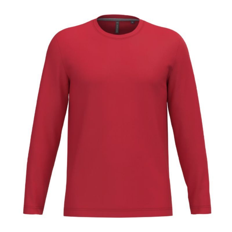 La camiseta de cuello redondo y manga larga para hombre K359 roja es una prenda básica y funcional pensada para un uso profesional y diario. Confeccionada en algodón peinado lavado con enzimas, ofrece un tacto suave, una superficie lisa y una excelente imprimabilidad, manteniendo su aspecto tras múltiples lavados.