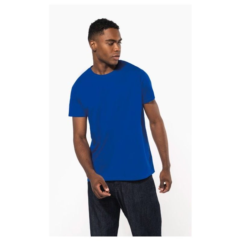 Su corte recto, moderno y cómodo, junto con la construcción tubular, permite libertad de movimiento durante la jornada. El cuello redondo de canalé con elastán, la tira cubrecosturas a tono y los acabados con doble pespunte refuerzan la durabilidad de la prenda. Al ser un modelo No Label, es totalmente apto para personalización con marca propia. El producto cuenta con certificación GOTS, garantizando una fabricación ecológica y socialmente responsable.