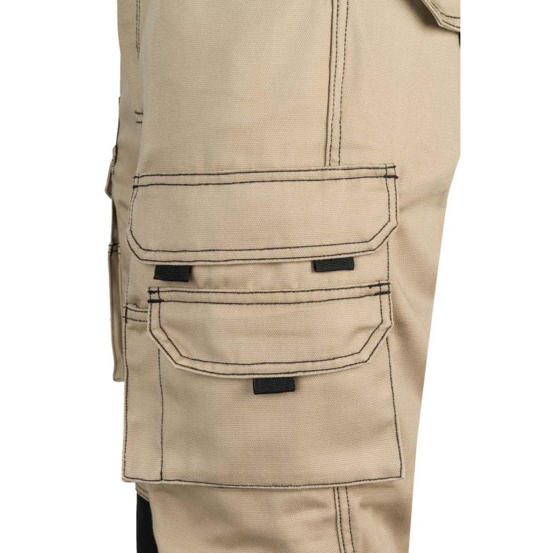 ·El pantalón laboral beige negro está pensado para profesionales que necesitan libertad de movimiento y protección en el trabajo: