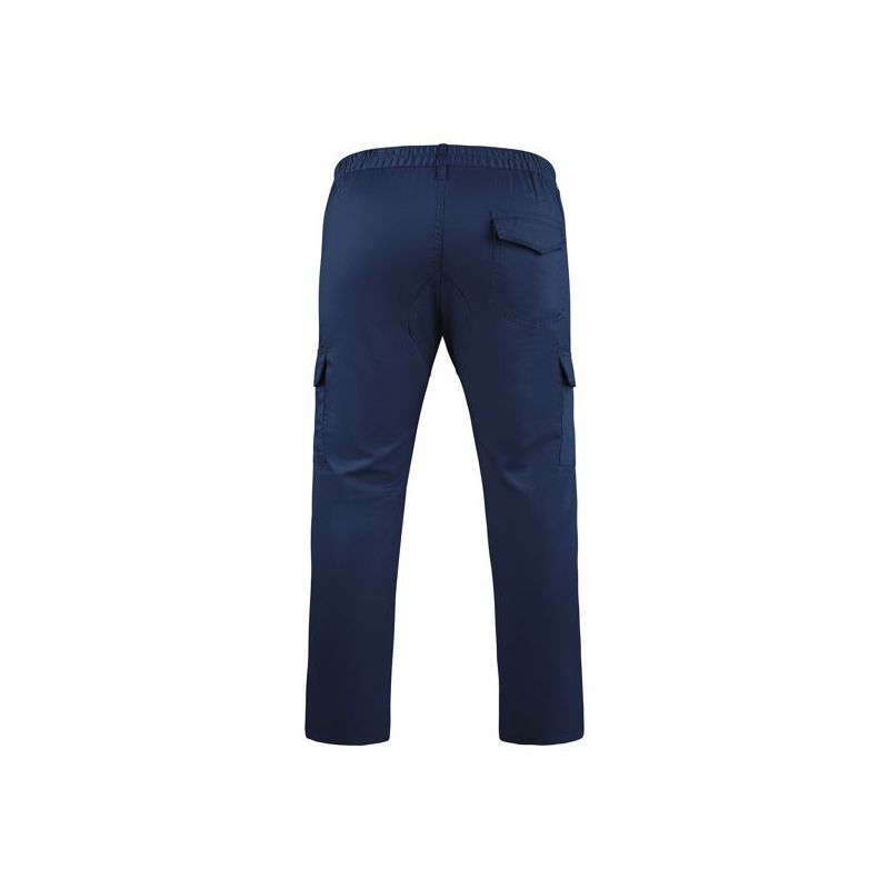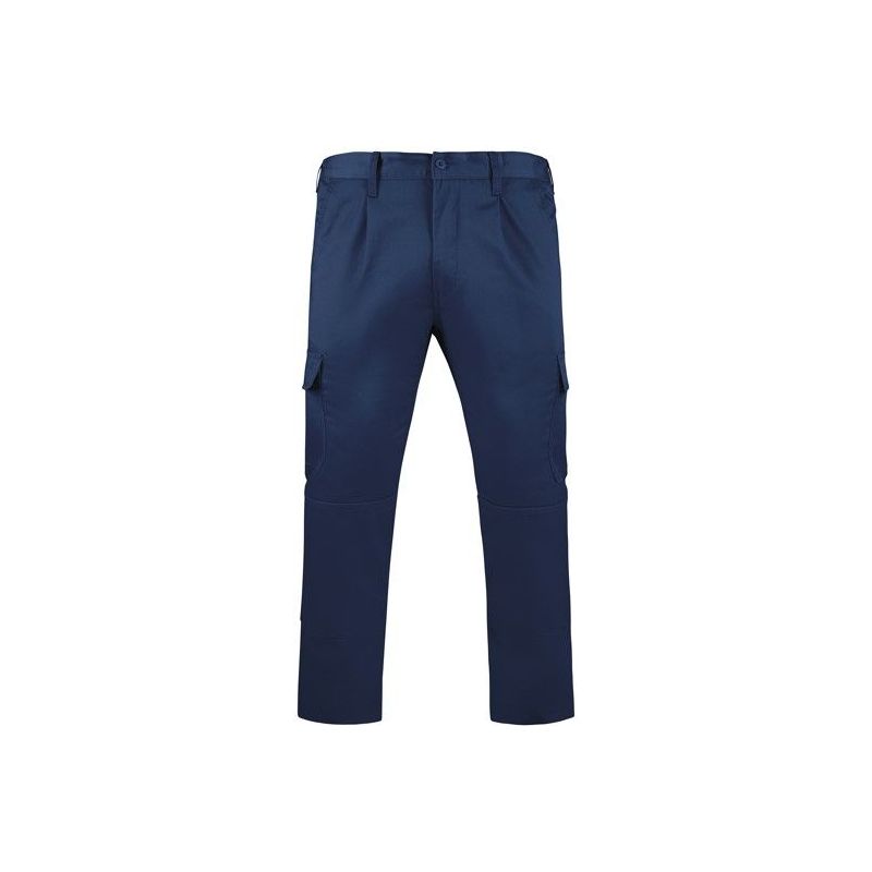 Confeccionado en 65% poliéster y 35% algodón, con gramaje de 240g/m², garantiza resistencia al desgaste y confort durante toda la jornada. Su cintura engomada en la parte trasera y las pinzas delanteras proporcionan un ajuste ergonómico, mientras que las piezas de refuerzo en rodillas y entrepierna aumentan la durabilidad en zonas de mayor desgaste.