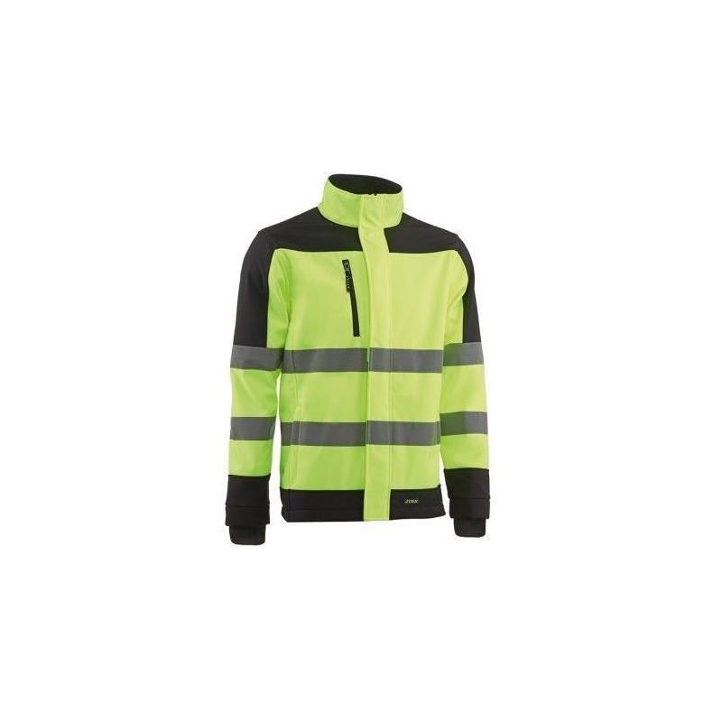 La nueva chaqueta cortavientos Fragata está disponible dentro del vestuario laboral de JUBA fabricada en color negro en las zonas de mayor suciedad y amarillo flúor con bandas reflectantes.
